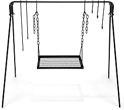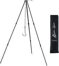 Campfire tripod stands are super sturdy metal tripods that can site directly over an open flame and hold a ton of weight.